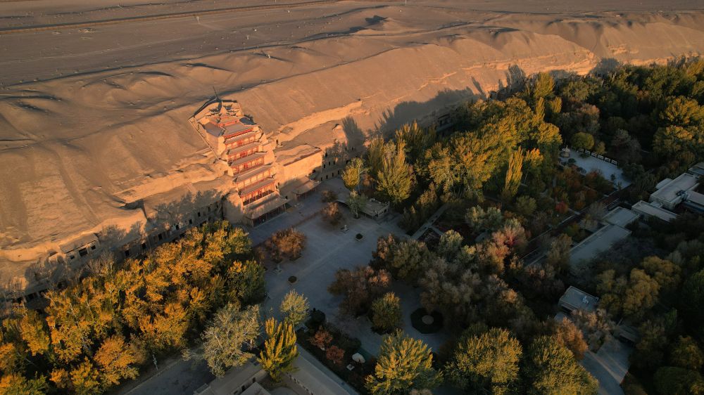飞阅中国·城记|什么是敦煌?   提到敦煌  我们总绕不开莫高窟  公元366年  一位名叫乐僔的和尚云游至此  见鸣沙山上金光万...