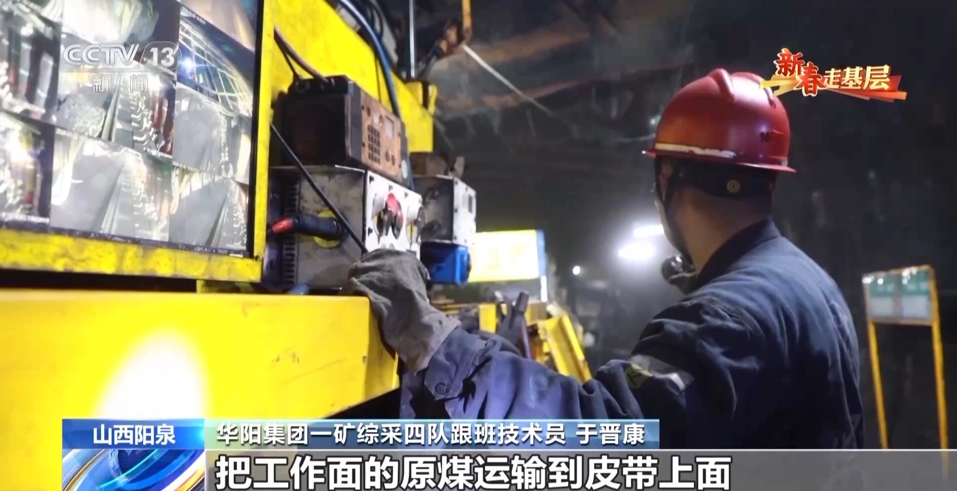 华阳集团一矿综采四队跟班技术员 于晋康:我负责操纵转载机,把工作面的原煤运输到皮带上面。我们现在是5G智能化矿井,所以转载机这块就有视频监控,可以实时看到我们工作面的,包括设备的运行状况、人员的作业状态,我们要确保一个无视频不作业、无监控不作业、无监管不作业。