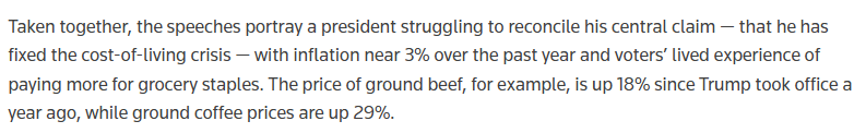 报道认为,这些数据与美方“已解决生活成本危机”的表述形成反差。而相关言论将通胀问题描述为“已经解决”,这一说法难以与民众在超市等日常消费场景中的体验相吻合。