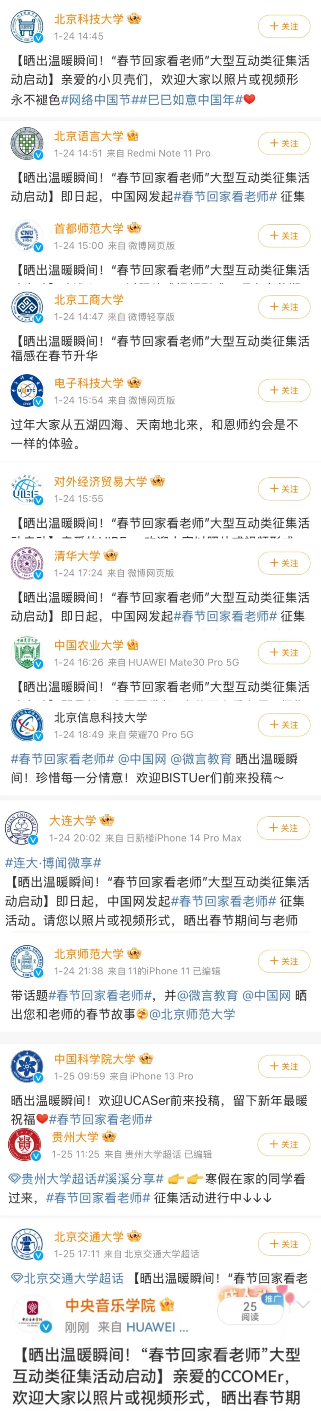微博话题#春节回家看老师阅读量累计突破数亿,一度冲上热搜榜前三。数十所高校与多家主流媒体联动响应,汇聚成一场对师恩的集体致敬。