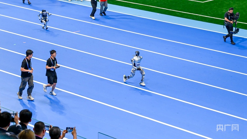 “行者泰山”参加2025世界人形机器人运动会1500米竞赛(央广网发 韩廉跃 摄)