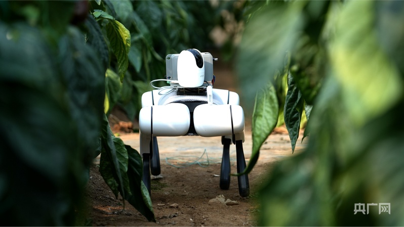 机器狗正在地里巡检(央广网记者 唐磊 摄)
