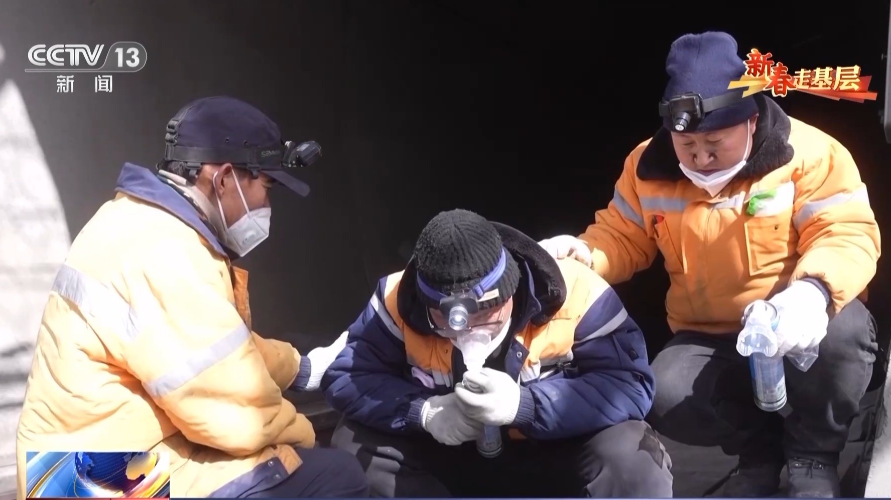 总台记者 崔宁:阿尔金山隧道的最高海拔大约是3550米,站在这里感觉喘气非常困难。像这样一个袋子,它的重量大概是25公斤到30公斤。今天大家要清理五六百袋这样的煤灰,体力消耗非常大。