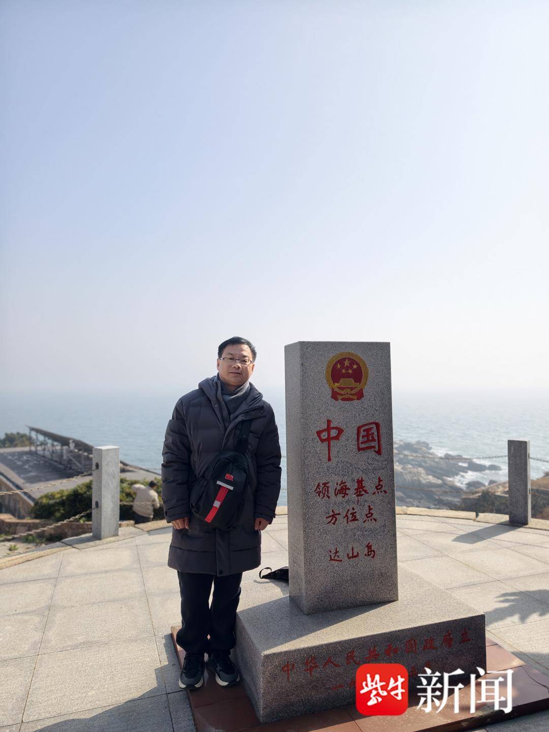 黄昏时分,记者站在前三岛最高处远眺,海天相接处霞光万丈。江权完成了一天的巡逻,认真记录着当天的情况。他的背影在夕阳下拉得很长,与海岛、礁石融为一体。