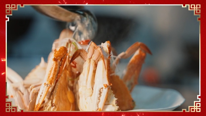 “这可是咱们的‘年货顶流’!”港湾水产的老板娘朱小惠麻利地从玻璃缸里捞起一只张牙舞爪的梭子蟹,螃蟹腹部的蟹壳泛出黄澄澄的色泽。“你瞧,如果这个‘梭子’的尖尖里都明显有蟹黄,说明这只螃蟹已经长到最肥美的程度了。”她笑着透露:最近几年春节期间店里的营业额逐年递增,今年春节,她家档口的生意再次迎来一个“小高峰”。