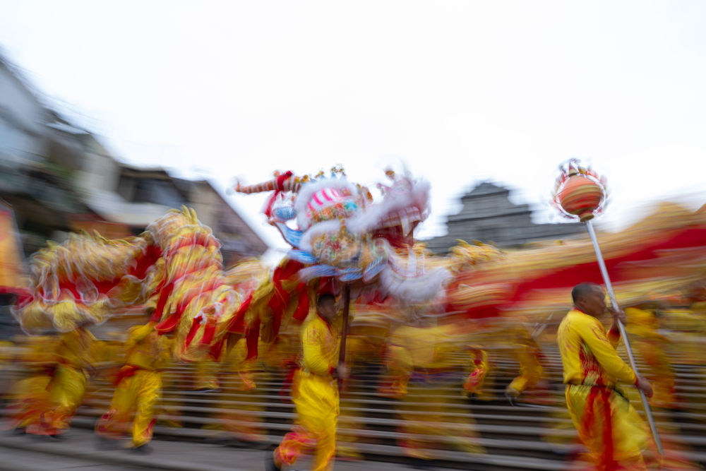 广东中山游客王世杰一早便在大三巴牌坊前等着金龙。“粤澳文化相近相通,都讲粤语、吃粤菜,都喜欢舞龙舞狮。”他说,舞龙醒狮同台献瑞的传统,把节日喜庆氛围“推向更高”。