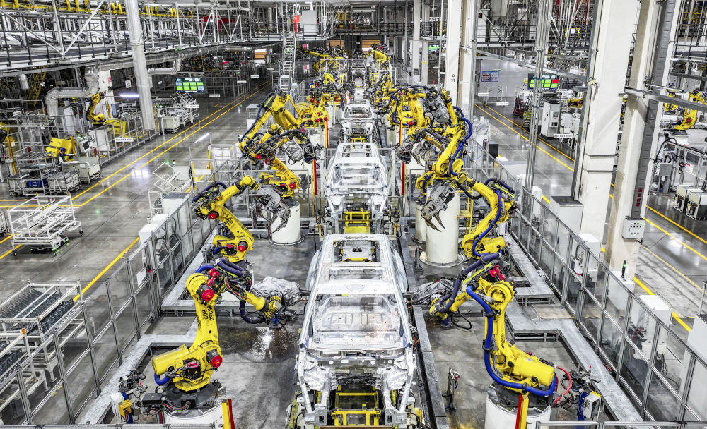 在位于重庆市两江新区的赛力斯汽车超级工厂拍摄的自动化生产作业现场(2025年9月19日摄)。新华社记者 王全超 摄