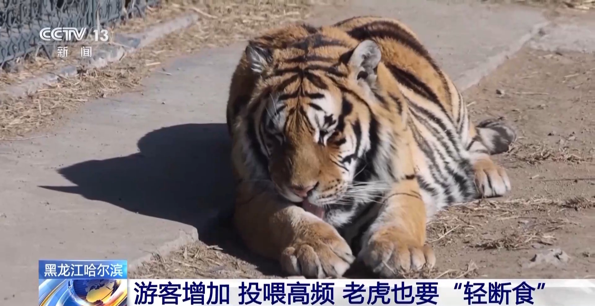 国家林业和草原局猫科动物研究中心常务副主任 姜广顺:对于东北虎林园来讲,断食的这种方法一直都在采用,是饲喂大型猛兽的一个非常科学的饲喂措施,我们尽可能地使圈养的老虎,能够保持野外老虎的一些行为和生理代谢的一些特征,从保持野性来讲,包括断食的这种措施也是遵循野生老虎活动和饮食的规律。