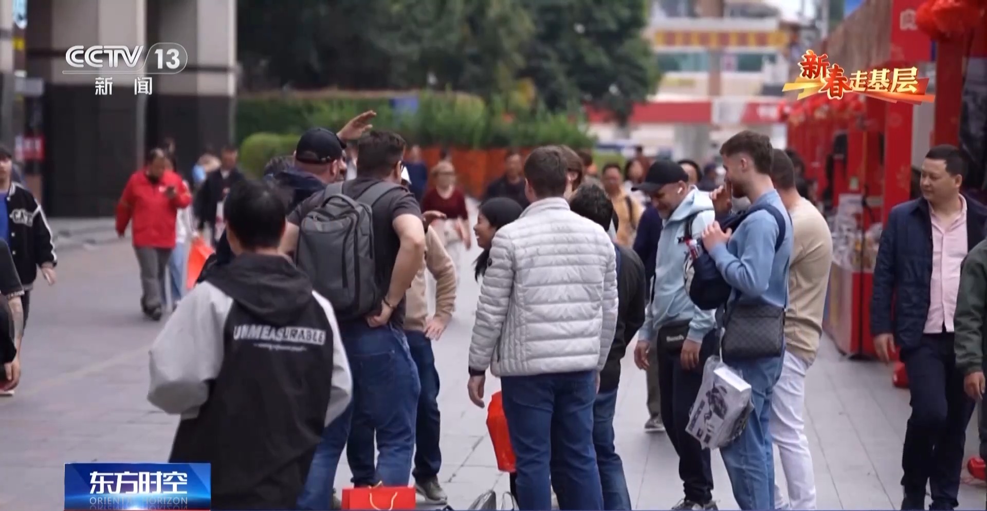 外卖员 张辉:自从去年落地签以后,外国人特别多。外国人都喜欢来定制一部分产品,这是对我们中国科技的信任了。