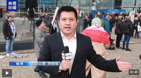 总台记者 贺俊强:这里是柏林中央火车站前的广场。我们看到游行的人群正在这里聚集,将沿着市中心主要街道向勃兰登堡门方向行进。现场看到多个反战组织的民众手举标语,高喊口号,表达对当前中东局势升级的担忧,以及对和平的呼吁。
