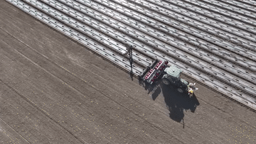 伴随着搭载北斗导航系统的播种机发出阵阵轰鸣,铺膜、铺设滴灌带、播种等工序一气呵成。连日来,新疆“超级棉田”又迎来了新一季春播的忙碌时节。
