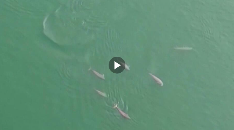 上海渔政巡航的工作人员回忆道:“就在那个黄的浮标上面一点点。我们巡航的时候,经常看到江豚在水面上跃,那是很激动的,以前没有的。我们能够肉眼看到它们洄游,很高兴。”