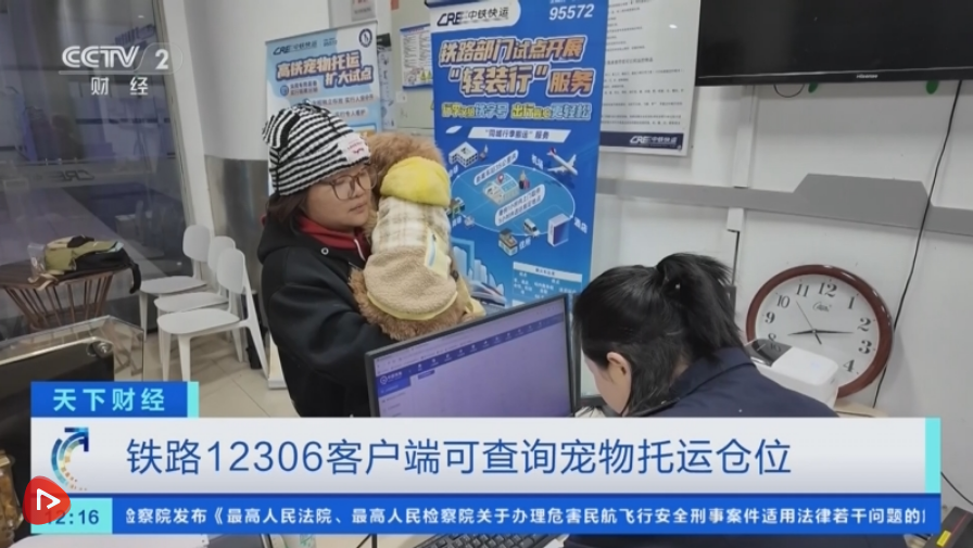 中铁快运股份有限公司高铁快运部业务经理王玉珏介绍,下单的时候可以填写托运人的收发货信息,托运人当日要携带宠物以及《动物检疫合格证明》到营业部现场办理托运手续。确认宠物装车后,会通过短信的形式告知托运人装载的车次,以及到达之后会通过短信告知收货人,凭借有效的身份证件领取宠物。